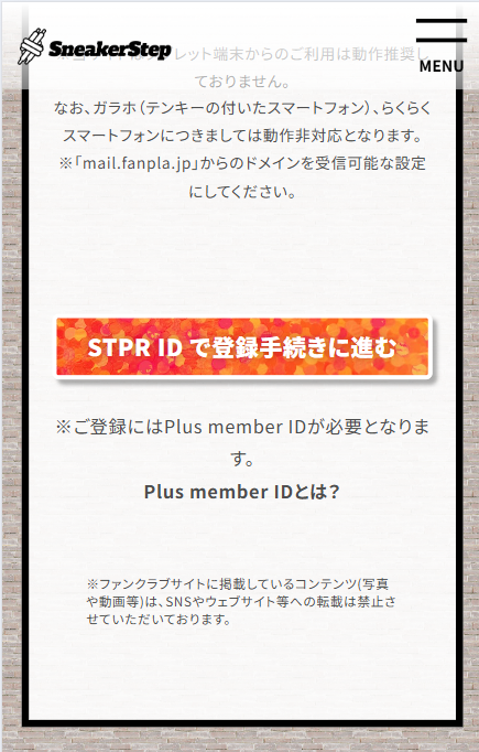 入会案内ページの最下部の「STPR IDで登録」ボタンをクリック
