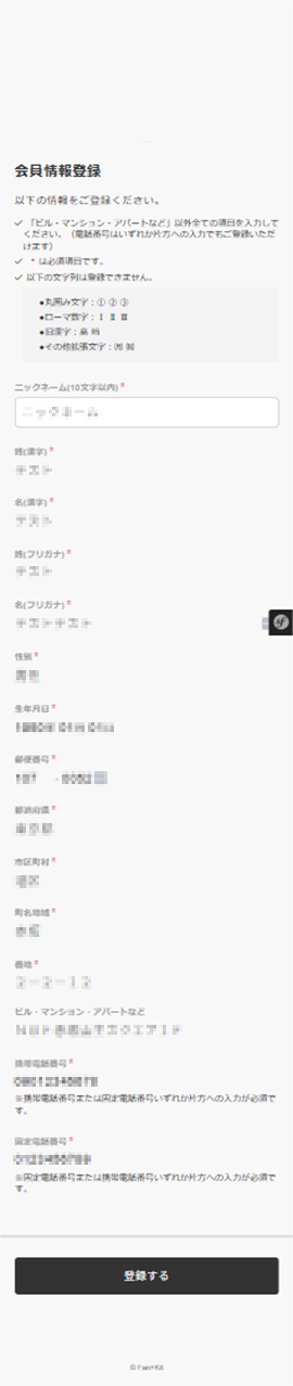 正しい住所が確認できたら(間違っている場合はこの画面で修正)「登録する」ボタンをクリック