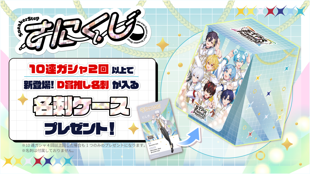 ※くじ開催期間中、10連ガシャを2回以上引いた方(1回くじを20回以上引いた方も対象)に、特典として『限定名刺ケース』をプレゼントいたします